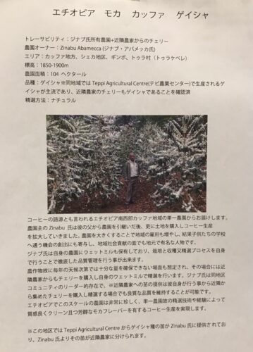 『エチオピア モカ カッファ ゲイシャ』が入荷しました☆