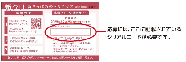 シリアルコード付応募券を差し上げます。(1会計につき1枚)。