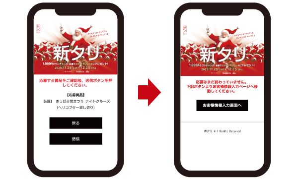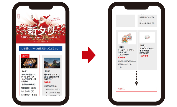 - 賞品確認ページでご希望のコースを最終確認し、「送信」ボタンを押し、