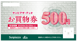 期間中、サンピアザ・デュオ各専門店(一部除外店あり)でのご利用1,000円(税込)※以上の方に、