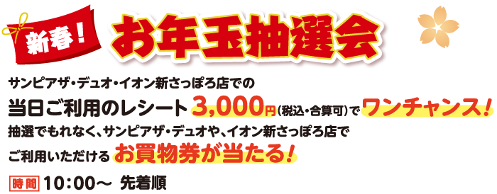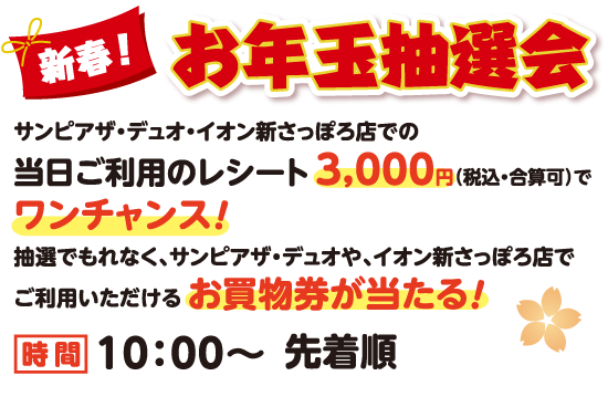 ※サンピアザ、デュオ、イオン新さっぽろ店の当日ご利用レシート